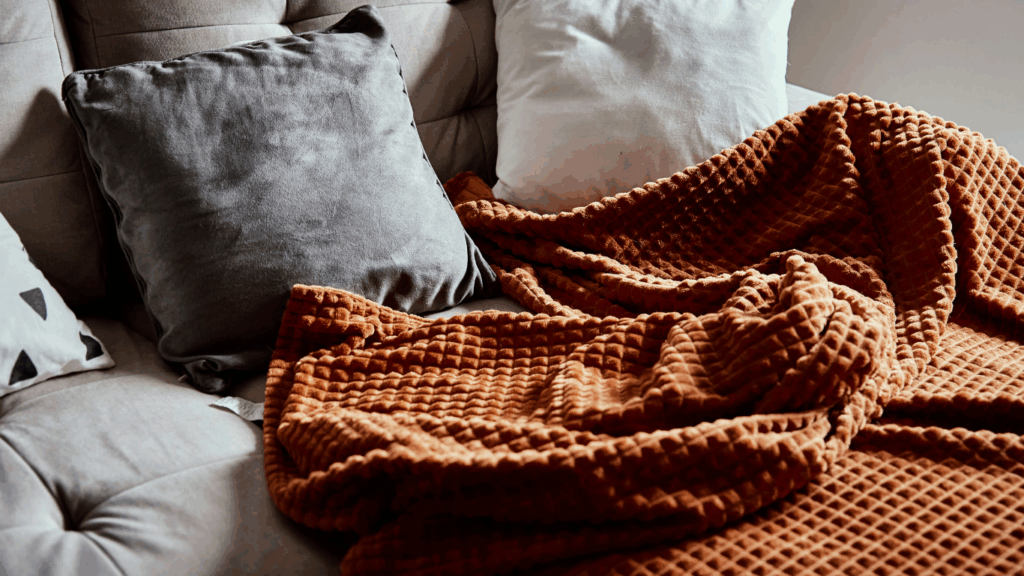 ブランケット & スロー:深紅やマスタードで季節感をひとさじ