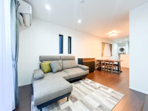 賃貸マンションにお引越しされたK様からのご依頼をいただきました。ダイニングルームとその奥に和室。