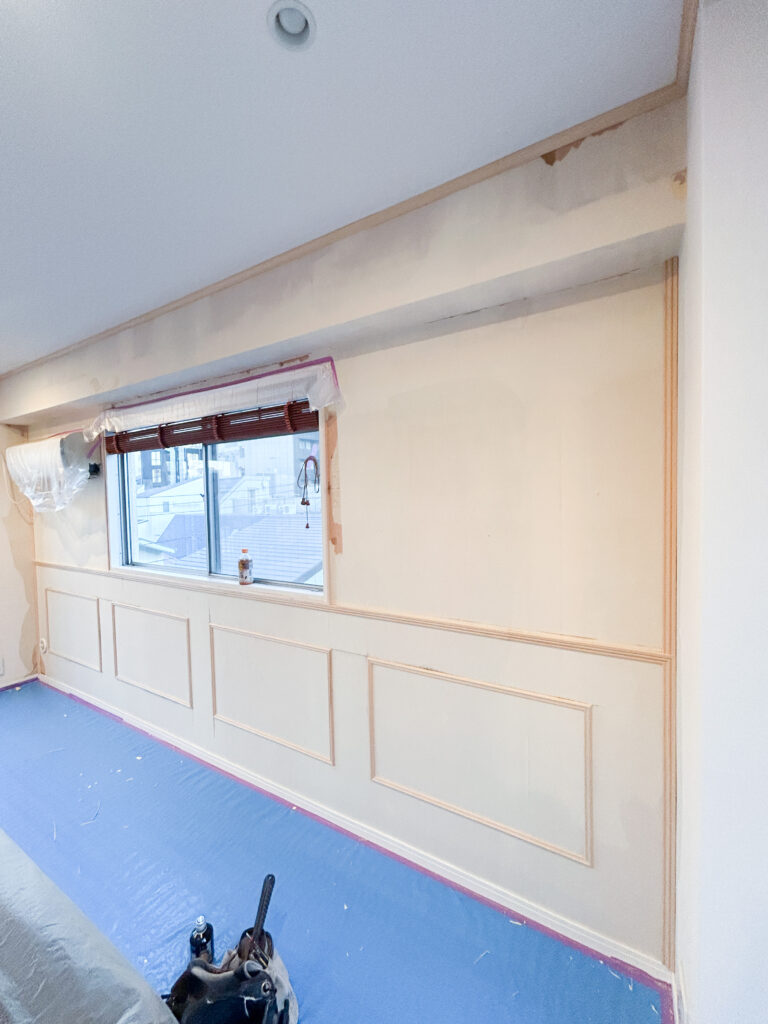 モールディングを取り付けて、艶があまりない白で塗装することをご希望でした。